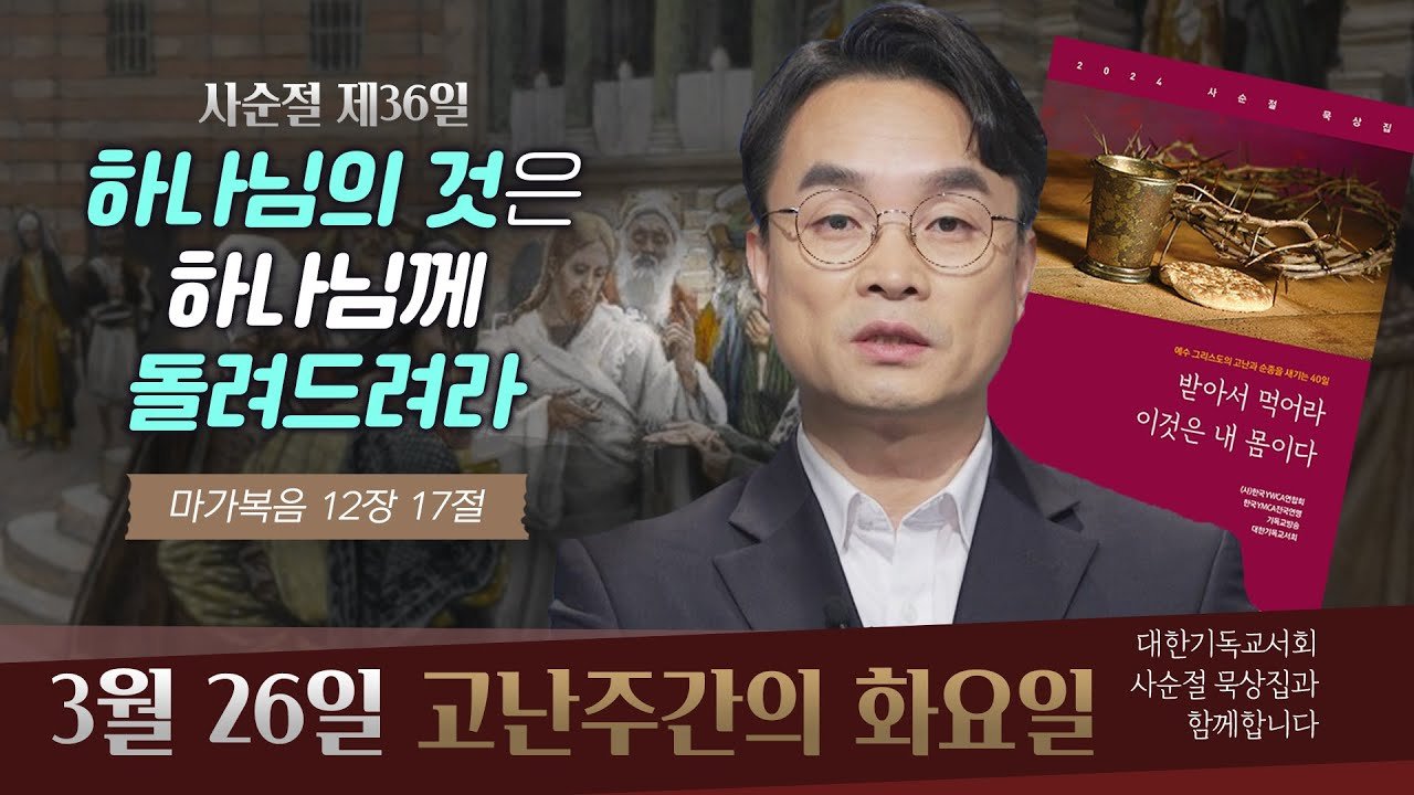 [사순절 묵상] 제36일 고난주간의 화요일 "하나님의 것은 하나님께 바치라" l 마가복음 12:17 (youtube.com)