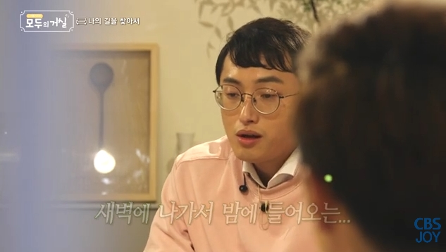 여행작가 장영은이 방문을 열고 모두의 거실로 나왔습니다.