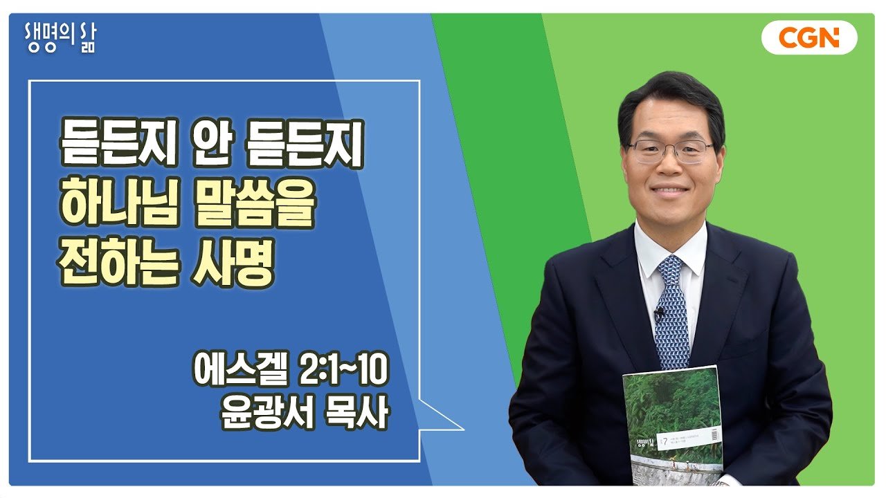 [생명의 삶 큐티] 듣든지 안 듣든지 하나님 말씀을 전하는 사명 | 에스겔 2:1~10 | 윤광서 목사 | 250720 QT - YouTube에스겔 2장 1~10절1 그가 내게 이르시되 인자야 네 발로 일어서라 내가 네게 말하리라 하시며 2 그가 내게 말씀하실 때에 그 영이 내게 임하사 나를 일으켜 내 발로 세우시기로 내가 그 말씀하시는 자의 소리를 들으니 3 내게 이르시되 인자야 내가 너를 이스라엘 자손 곧 패역한 백성, 나를 배반하는 자에게 보내노라 그들과 그 조상들이 내게 범죄하여 오늘까지 이르렀나니 4 이 자손은 얼굴이 뻔뻔하고 마음이 굳은 자니라 내가 너를 그들에게 보내노니 너는 그들에게 이르기를 주 여호와의 말씀이 이러하시다 하라 5 그들은 패역한 족속이라 그들이 듣든지 아니 듣든지 그들 가운..